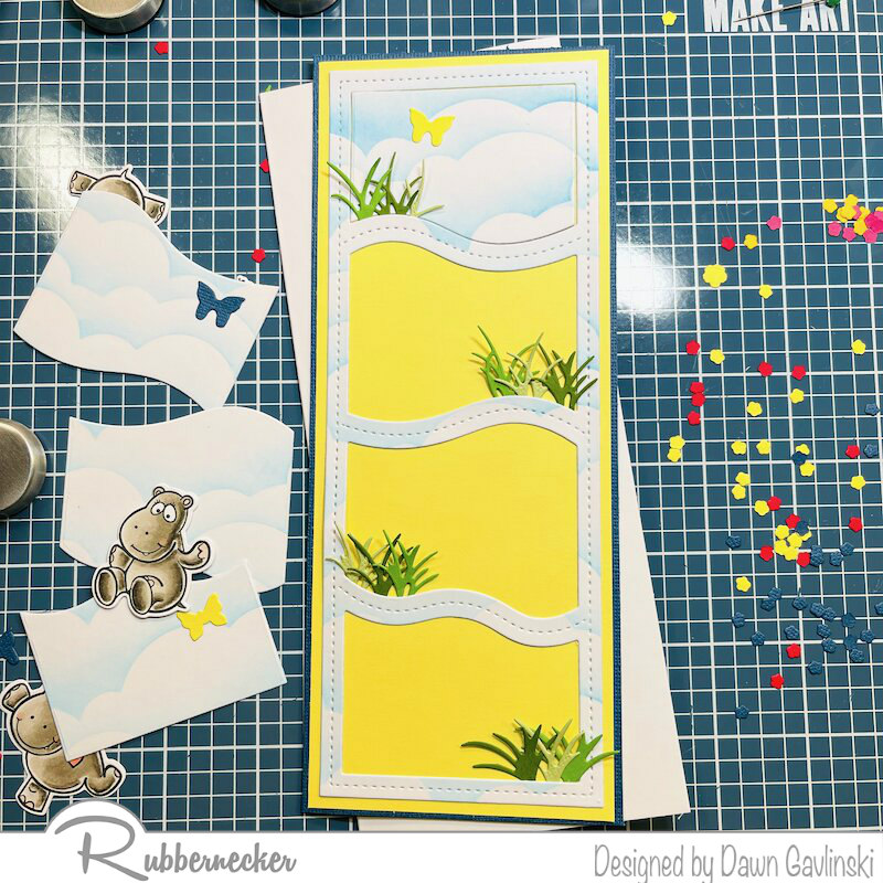 - Die cut all your Hippos and anything else you may have colored out so you can have your dies already to place on your card when figuring out the layout.